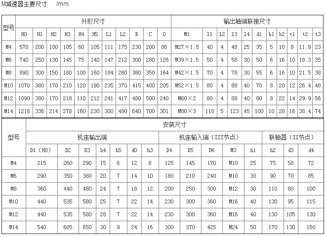 M型立式蝸桿減速機(jī)外形尺寸