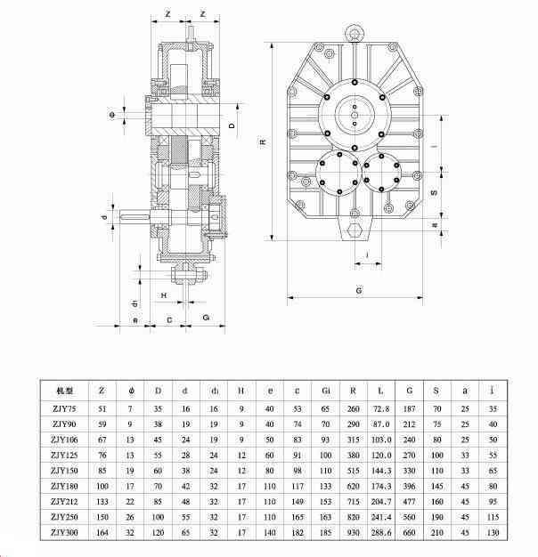 產(chǎn)品按ZBJl9009-88標(biāo)準(zhǔn)制造。主要傳動零件采用合金鋼材質(zhì)。齒輪經(jīng)滲碳淬火磨齒工藝加工,精度為(GBl0095-88)6級。產(chǎn)品體積小,承載能力高,壽命長,噪音低,效率高。與ZJ系列軸裝和減速器比較,相同的輸出扭矩,ZJY重量只有ZJ的30%左右,因而對配套主機的機架剛性要求大大下降,傳動平衡。