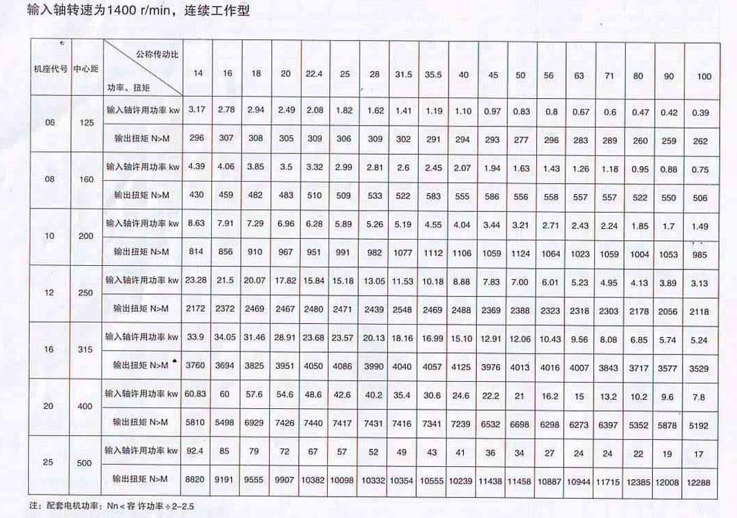 QS型減速器的承載能力是按輸入軸轉(zhuǎn)速為1400r/min,工作級(jí)別為M6時(shí)(見表2.5-58)和連續(xù)工作型設(shè)計(jì)的。